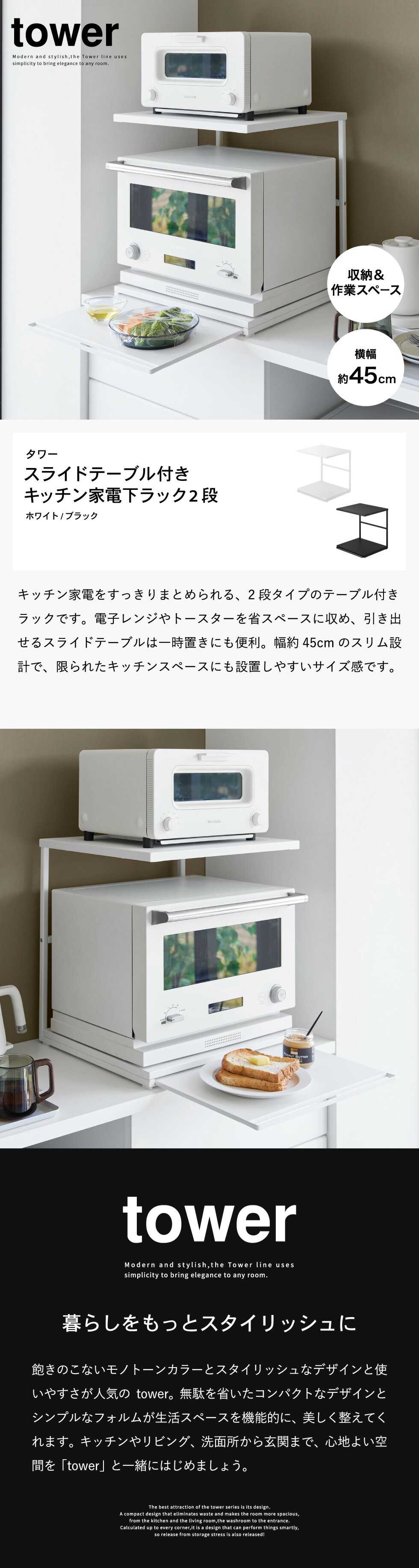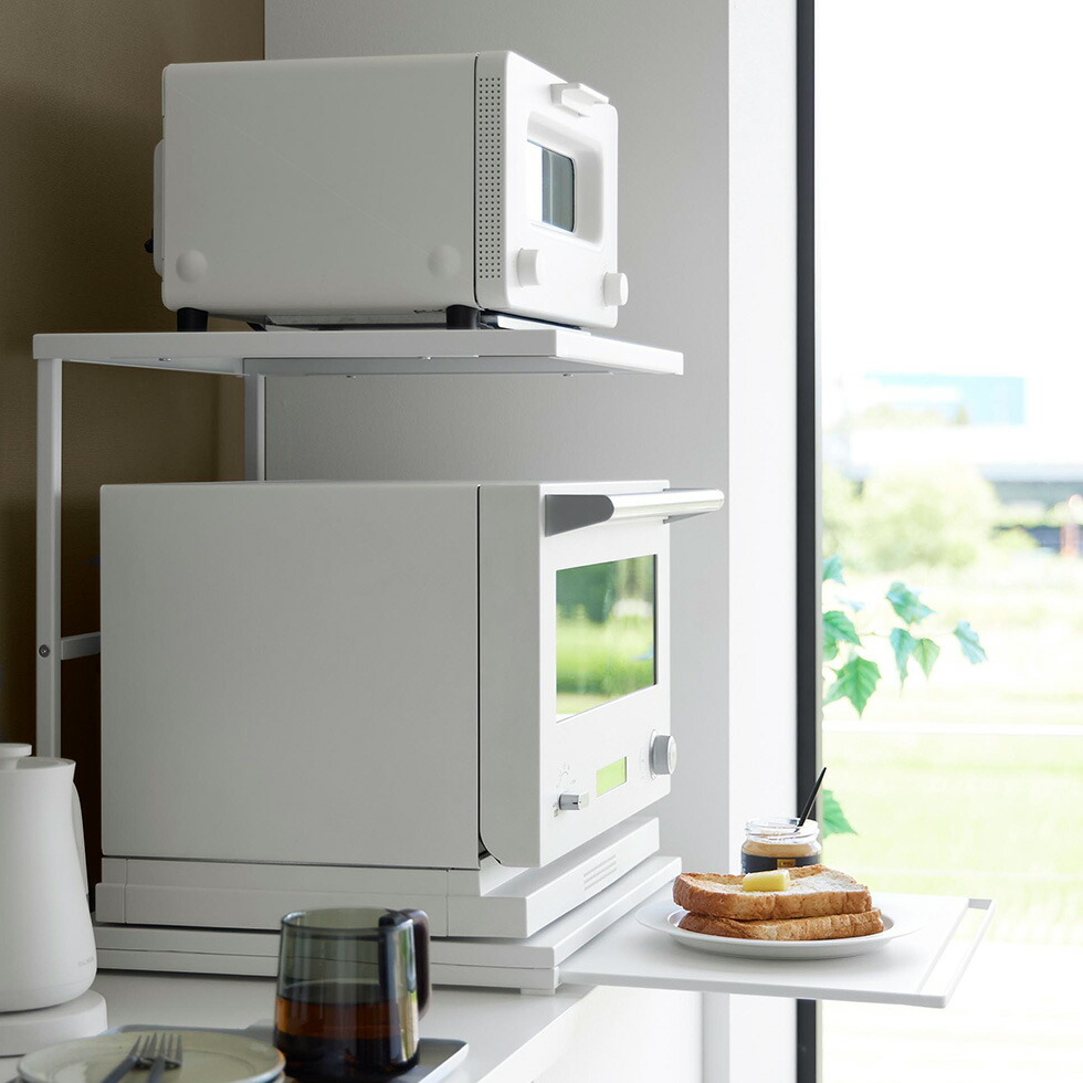 tower スライドテーブル付きキッチン家電下ラック タワー 2段 山崎実業 10652 10653 / ホワイト