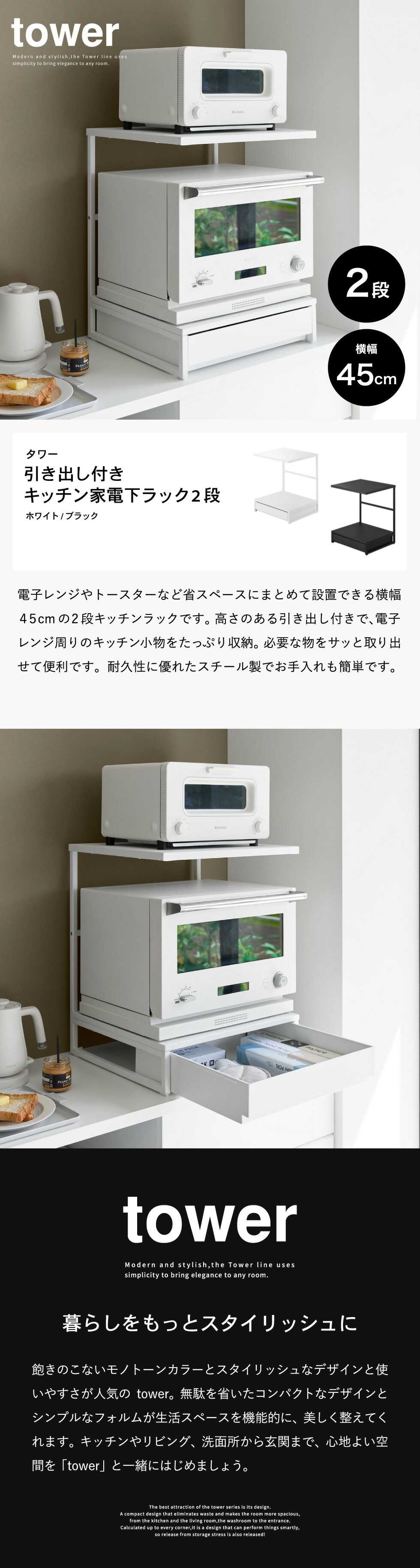 tower 引き出し付きキッチン家電下ラック タワー 2段 山崎実業 10654 10655 / ホワイト