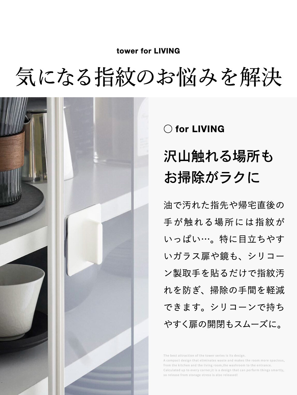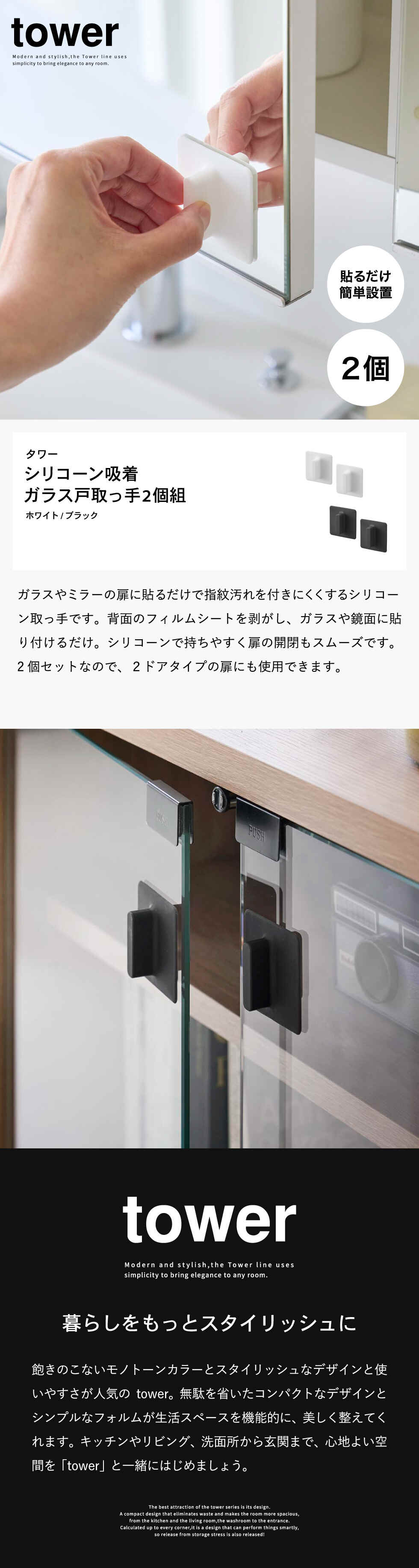 tower シリコーン吸着ガラス戸取っ手 タワー 2個組 山崎実業 10669 10670 / ホワイト
