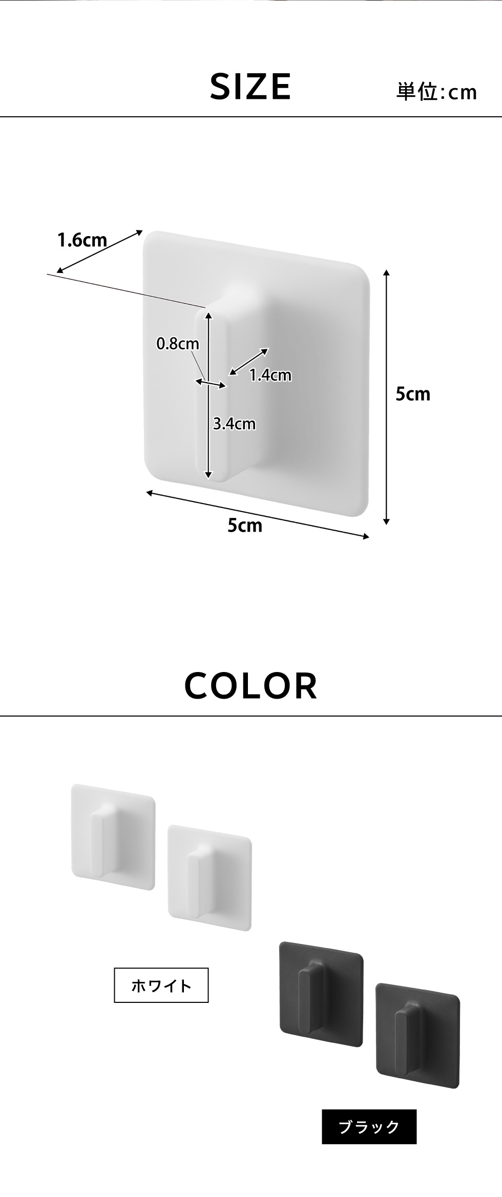 | サイズ/寸法 | 本体:W5×D1.6×H5cm(1つあたり)、取っ手部:W0.8×D1.4×H3.4cm |