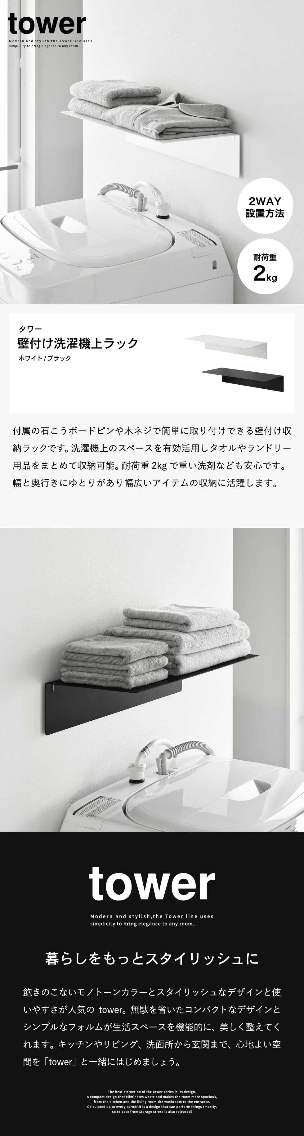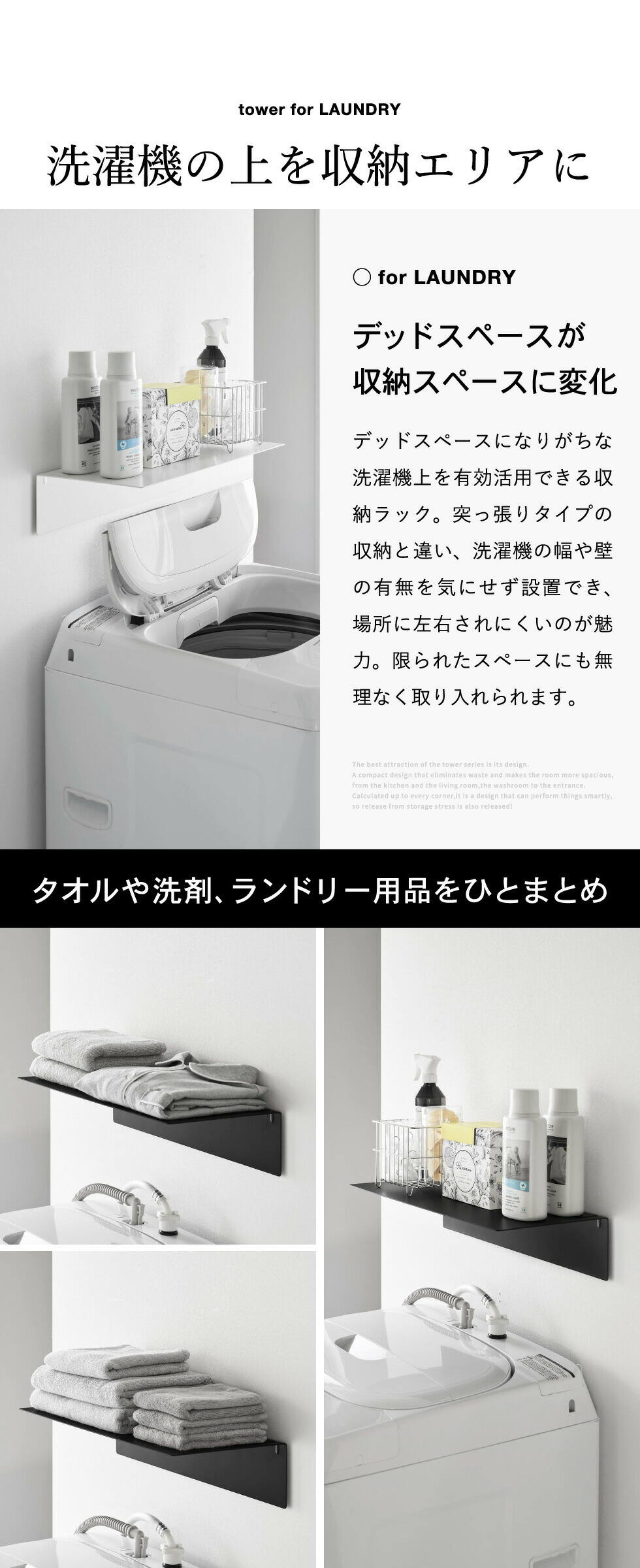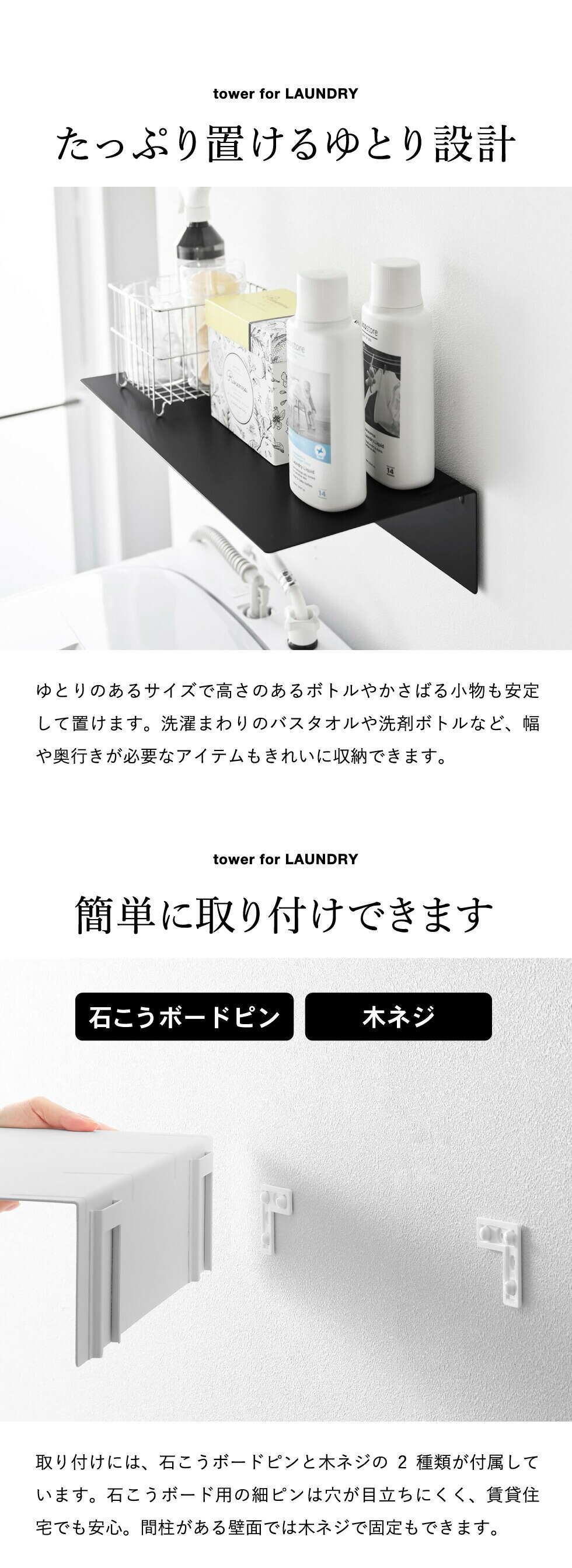 tower 壁付け洗濯機上ラック タワー 山崎実業 10763 10764 / ホワイト