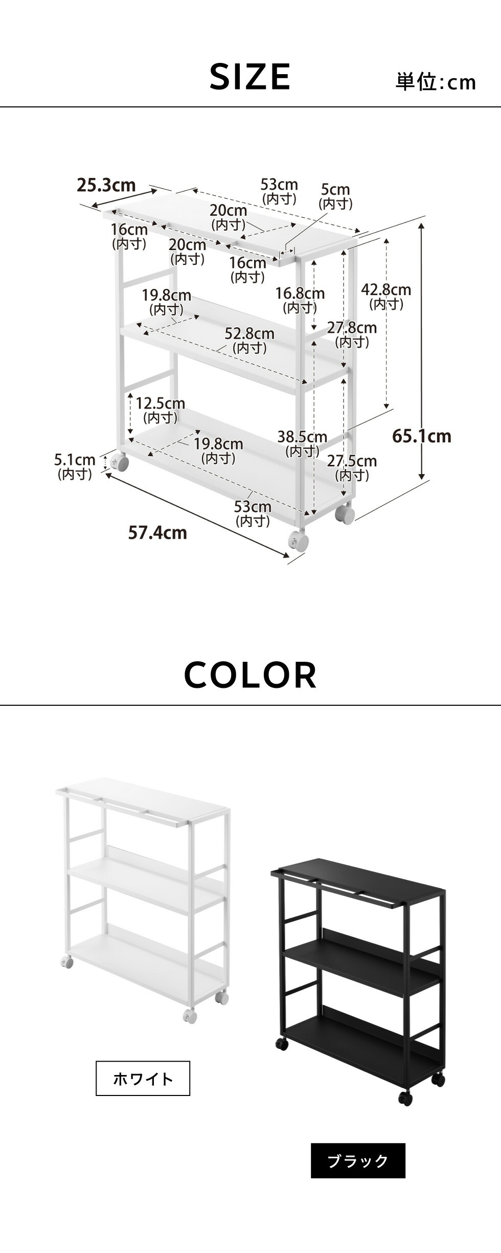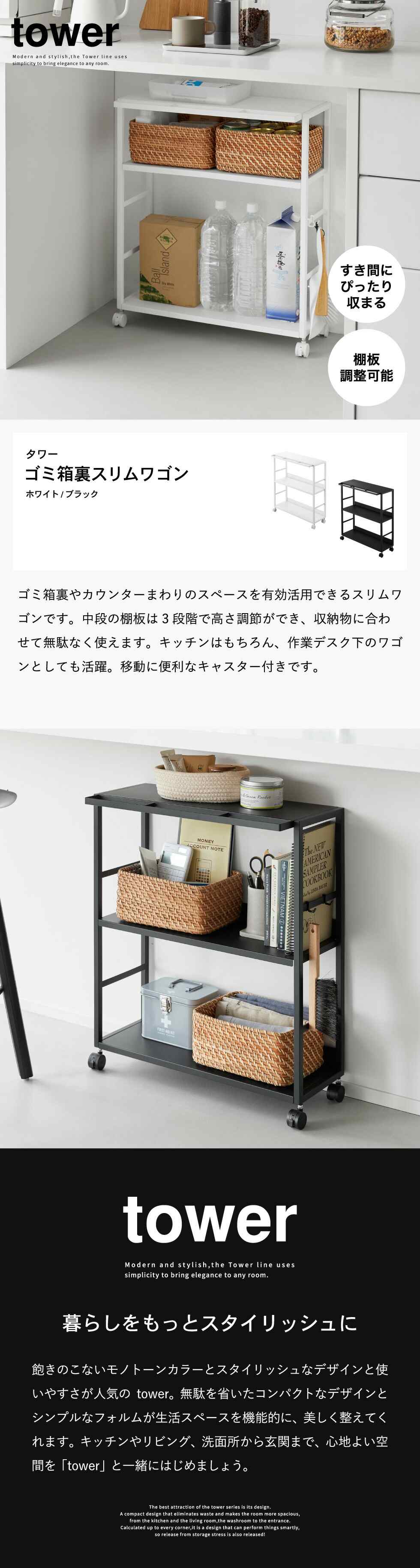 tower ゴミ箱裏スリムワゴン タワー 山崎実業 10765 10766 / ホワイト