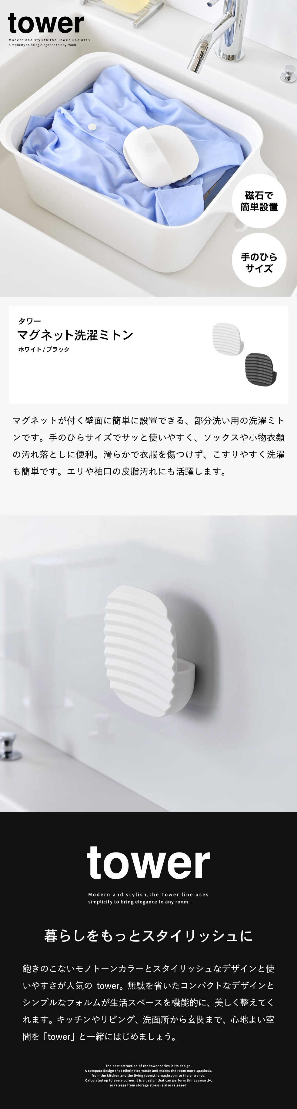 tower マグネット洗濯ミトン タワー 山崎実業 10775 10776 / ホワイト