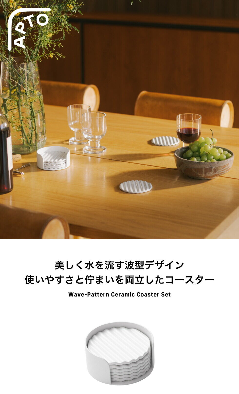APTO ウェーブ セラミックコースターセット アプト 山崎実業 10496