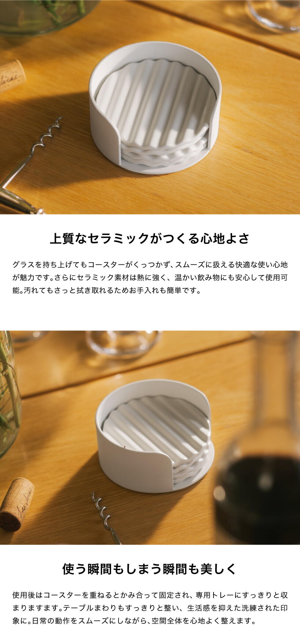 | 原材料/素材/材質 | ホルダー:スチール(粉体塗装)・シリコーンゴム コースター×6:陶器 |