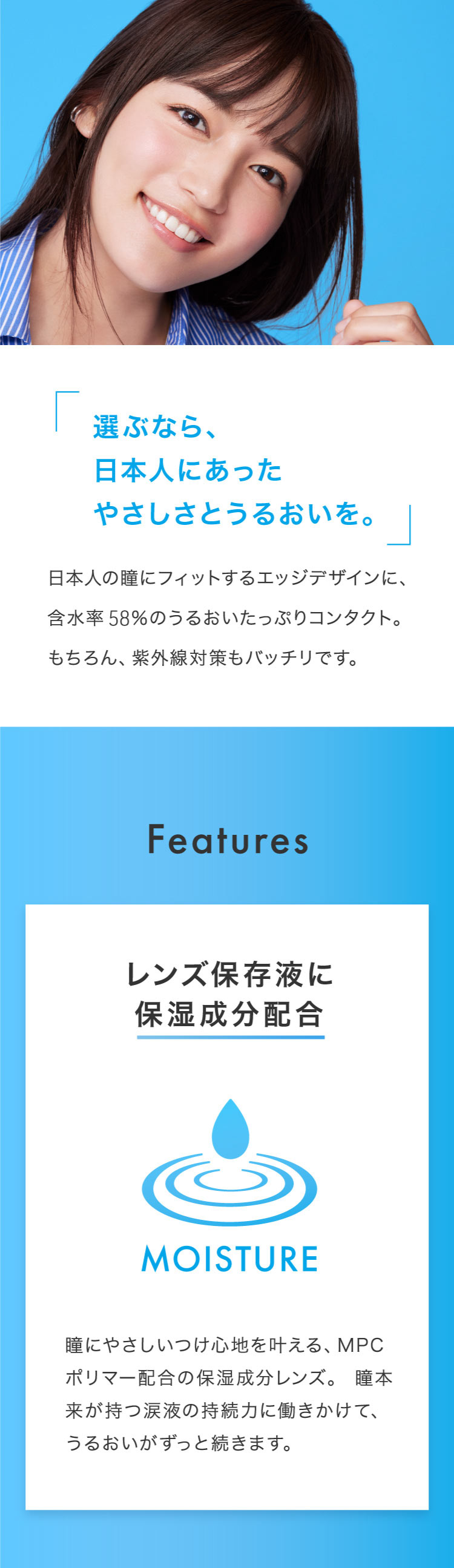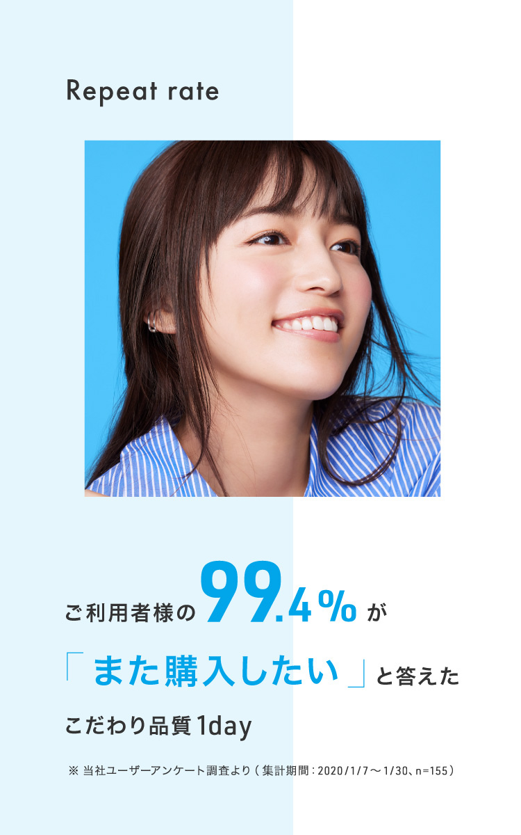 | その他詳細 1 | ■装用期間:1日交換タイプ ■装用 :終日装用 ■BC:8.7mm ■DIA:14.2mm ■度数 -0.50D~-6.00D(0.25刻み) -6.50D~-10.00D(0.50刻み) ■含水率:58% |
