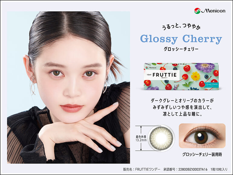 | その他詳細 1 | ■装用期間:1日使い捨て ■装用 :終日装用 ■BC:8.7mm ■DIA:14.2mm ■着色直径:スウィートベリー、ブライトオレンジ:13.3mm グロッシーチェリー、ミスティグレープ:13.2mm ハニーペアー:13.0mm ■度数 ±0.00D, -0.25D ~ -6.00D (0.25刻み) -6.50D ~ -10.00D (0.50刻み) ■含水率:58% |