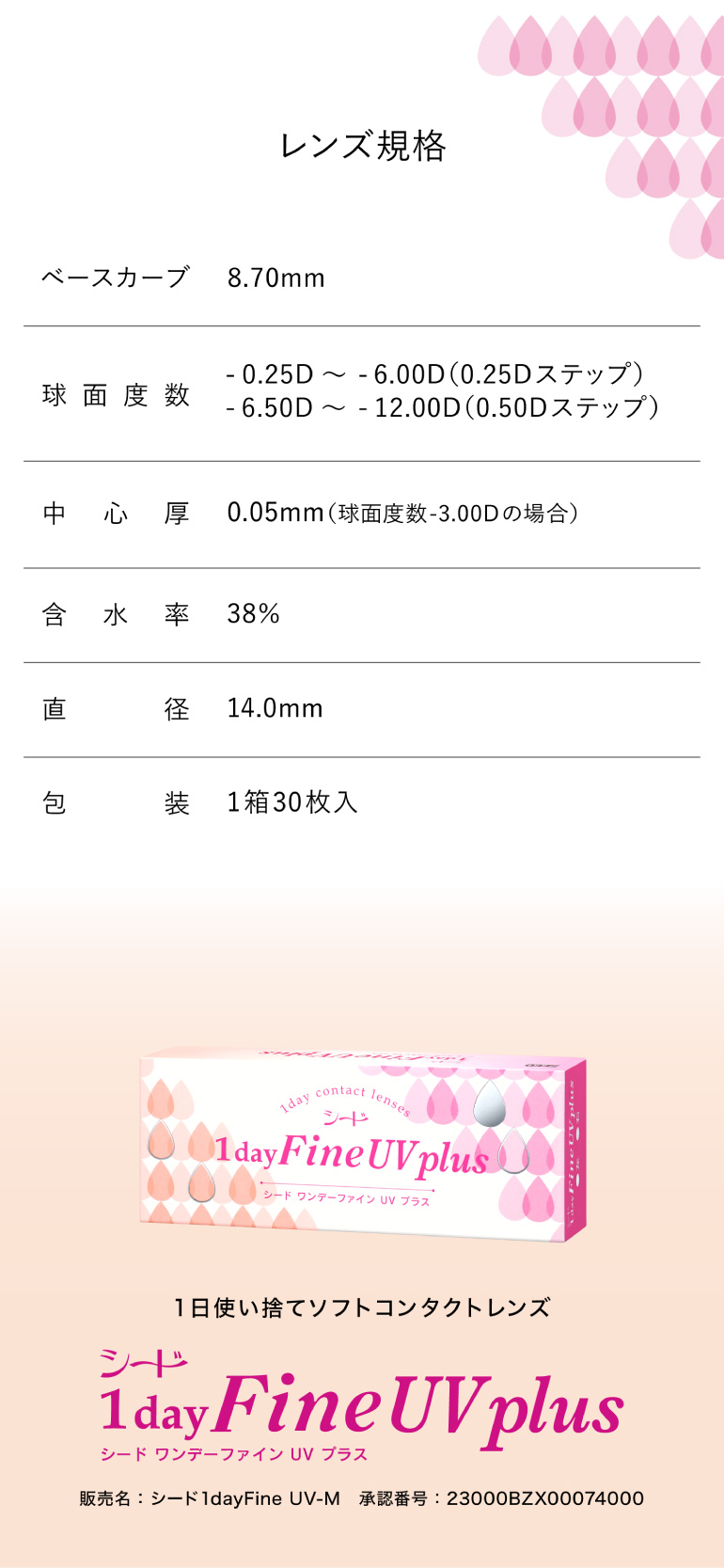 ワンデーファインUVプラス30枚【BC】8.7 【度数】-0.25 1箱