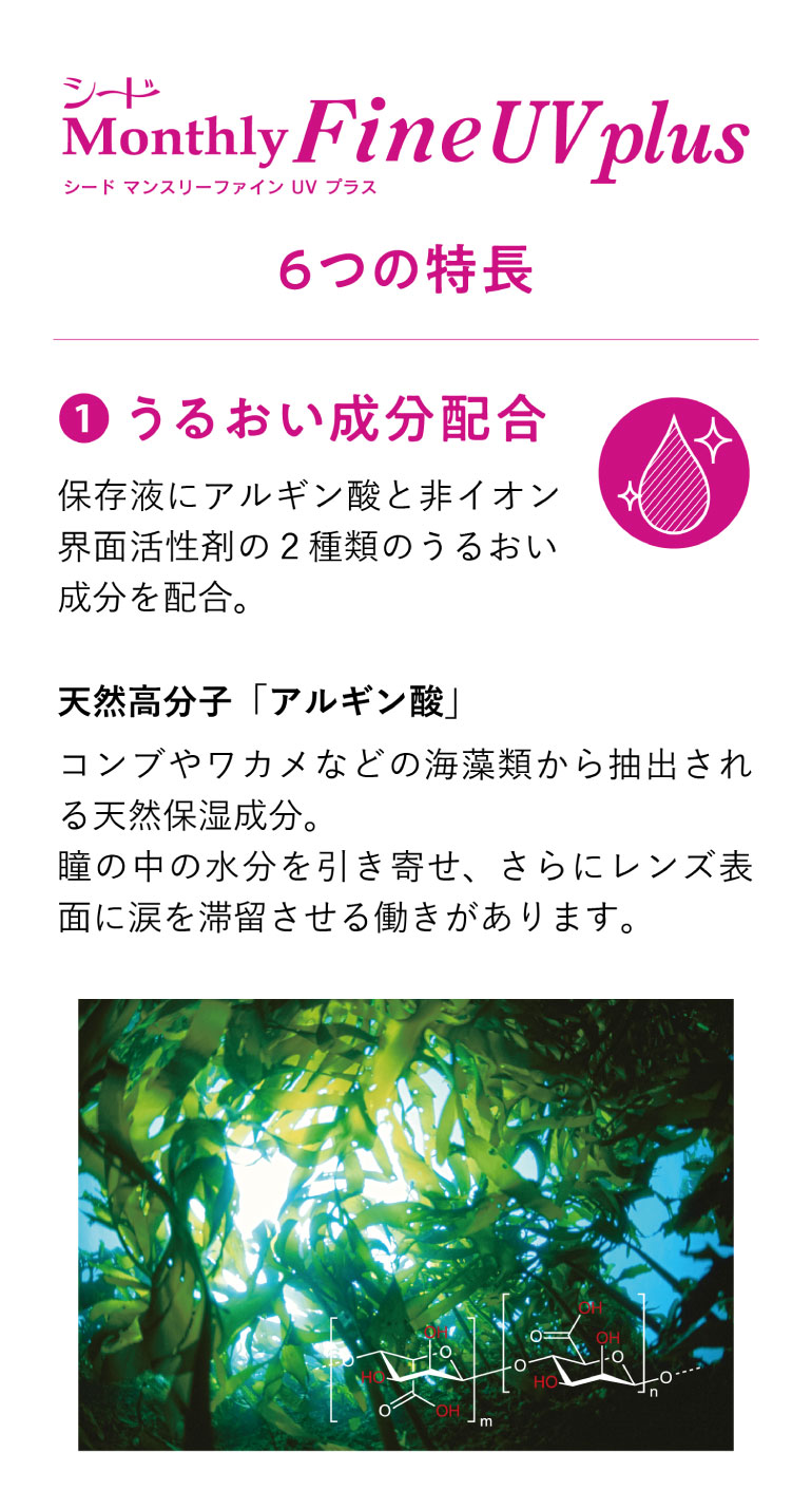 | その他詳細 1 | ■装用期間:1ヶ月使い捨て ■装用 :終日装用 ■BC:8.8mm ■DIA:14.0mm ■度数 -0.25~-6.00(0.25刻み) -6.50~-8.00(0.50刻み) ■含水率:38% |