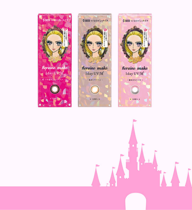 | その他詳細 1 | ■装用期間:1日使い捨て ■装用 :終日装用 ■BC:8.7mm ■DIA:ヒロインブラウン:14.0mm 光のブラウン、煌めきピンク:14.2mm ■着色直径:光のブラウン、ヒロインブラウン:13.4mm 煌めきピンク:13.6mm ■度数 ±0.00(度なし) -0.25~-6.00(0.25刻み) -6.50~-10.00(0.50刻み) ■含水率:38% |