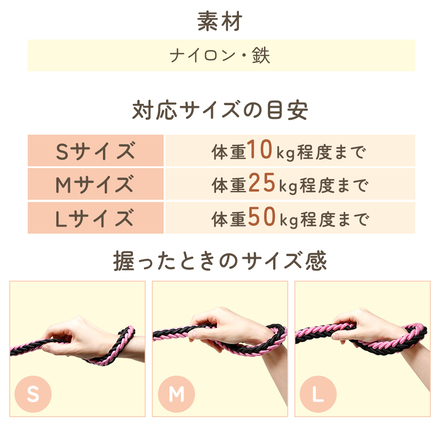 MILASIC 犬用 ロープ リード ブラック×ピンク Mサイズ TN-DRPL-B-M