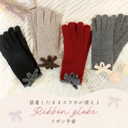 MILASIC リボン 指穴 手袋 ベージュ TN-GVRB-BG