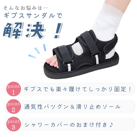 mitas ギプス サンダル 左右兼用 片足分 + シャワーカバー おまけ付き ブラック Lサイズ TN-GBSD-L