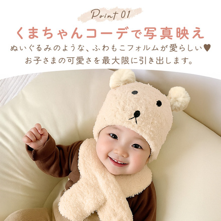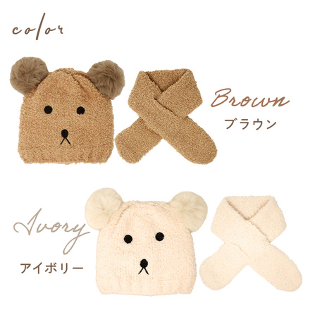MILASIC くまちゃん ニット帽 マフラー ブラウン TN-BRNHS-BR