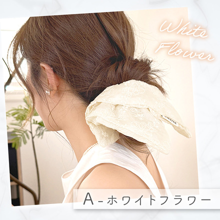 MILASIC スクエアシュシュ A-ホワイトフラワー TN-SQRSC-A