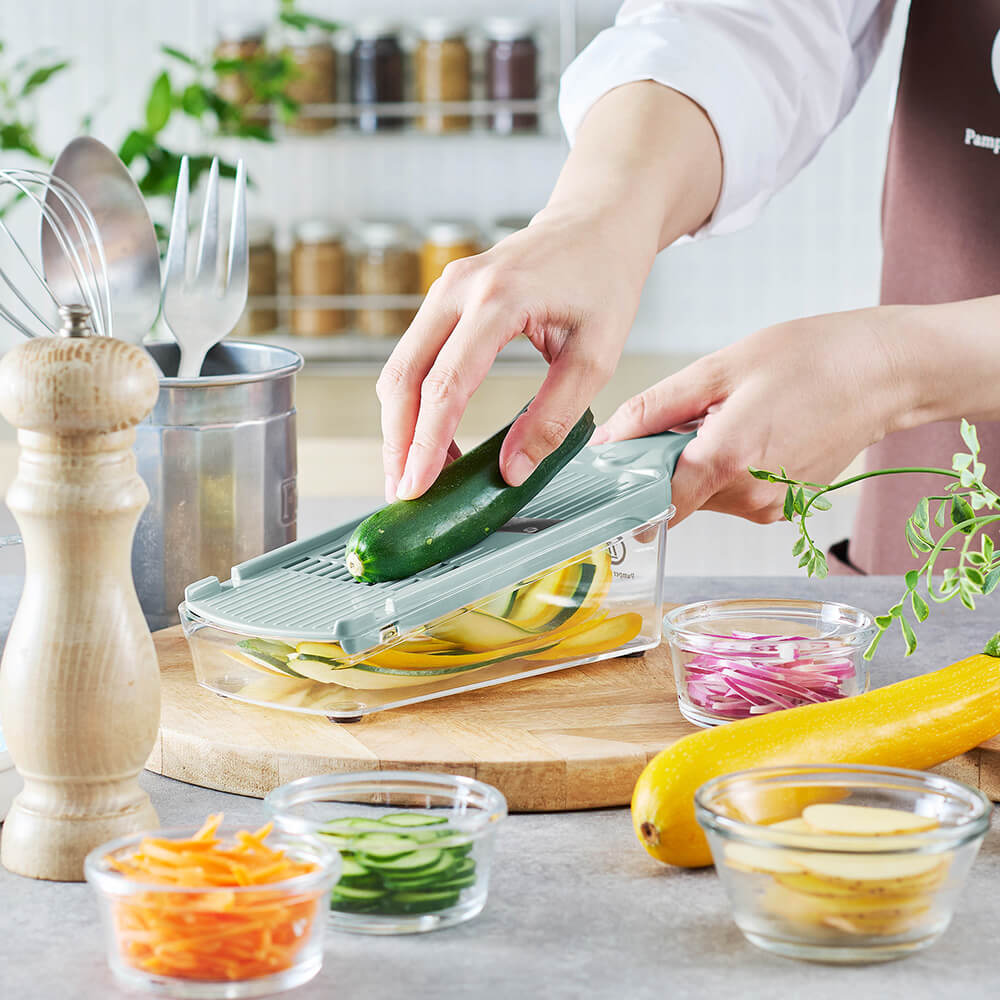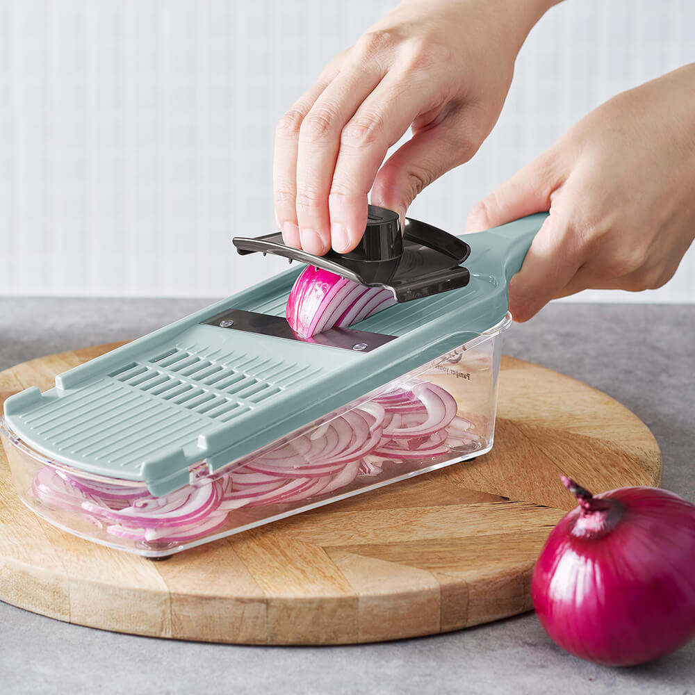 鍋やボウル、お皿の上でもサッと使えて楽々スライス!