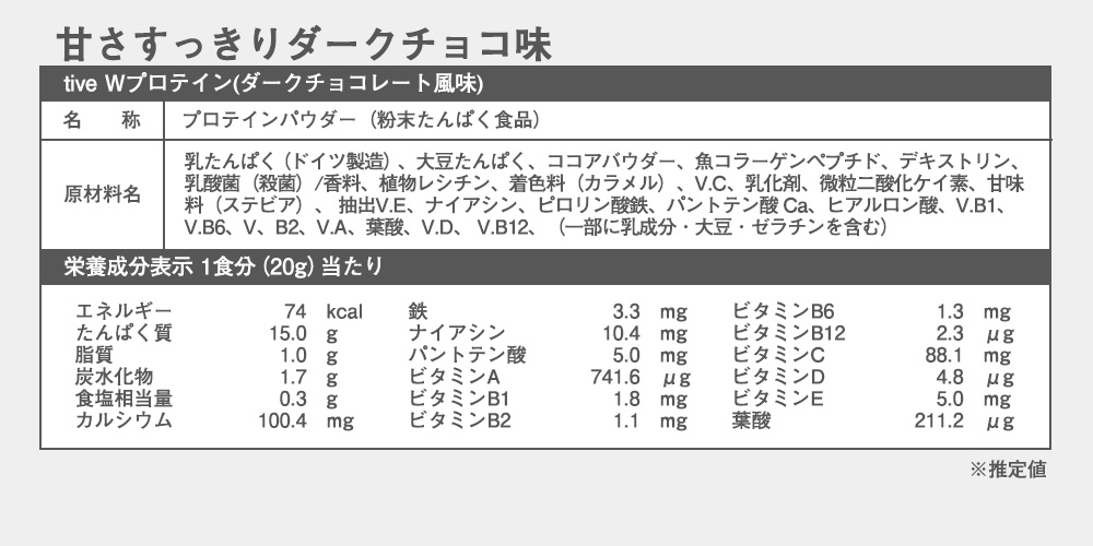プロテイン tive 甘さスッキリダークチョコ味 500g