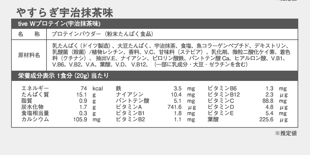 プロテイン tive やすらぎ宇治抹茶味 500g