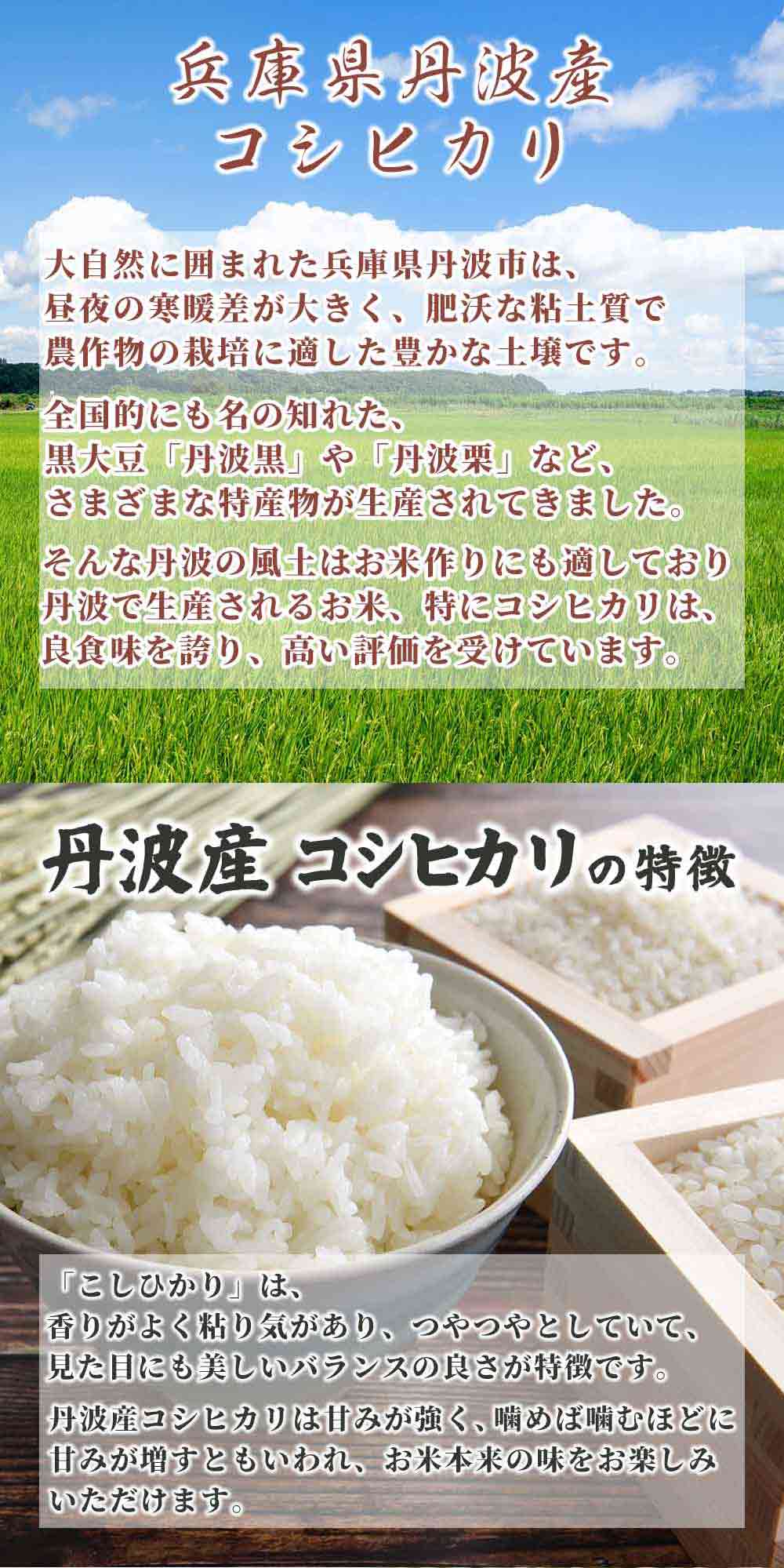 | その他詳細 2 | 雑穀米といえば雑穀米本舗。国産、国内産の原料を使用した雑穀米を多数取り揃えております。 毎日、雑穀米を食べ続けている店長加藤が特にオススメするのが 【丹波産コシヒカリ】です。 大自然に囲まれた兵庫県丹波市は、昼夜の寒暖差が大きく、肥沃な粘土質で農作物の栽培に適した豊かな土壌です。全国的にも名の知れた黒大豆「丹波黒」や「丹波栗」など、さまざまな特産物が生産されてきました。そんな丹波の風土はお米作りにも適していて、毎年良質なお米が育てられています。 「こしひかり」は、香りがよく粘り気があり、つやつやとしていて見た目にも美しい、バランスの良さが特徴的。 モチモチとした食感でほのかな甘さがあり、そのままでもおいしくお召し上がりいただけます。おかずとの相性の良さはもちろんですが、冷めてもおいしいので、お弁当に詰めたり、おにぎりにしたり、幅広い用途でお使いいただけるお米です。 |