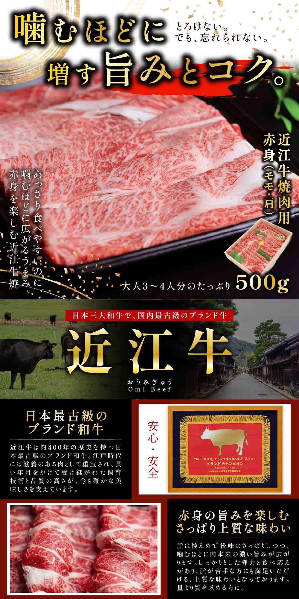近江牛 焼肉用 赤身 モモ・肩 500g