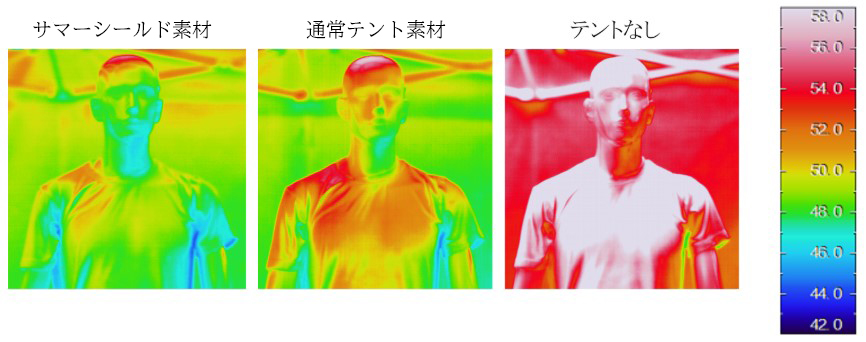 サマーシールド特有のラミネート構造により、体感温度-4℃以上の高い遮熱効果を実現。
