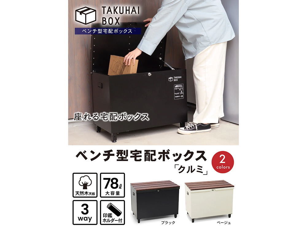 宅配ボックス、ベンチ、収納ボックスの3Way
