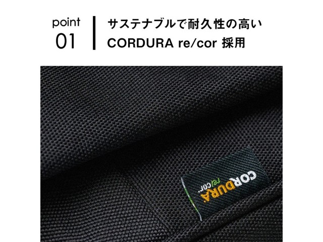 サステナブルで耐久性の高いCORDURA re/cor採用