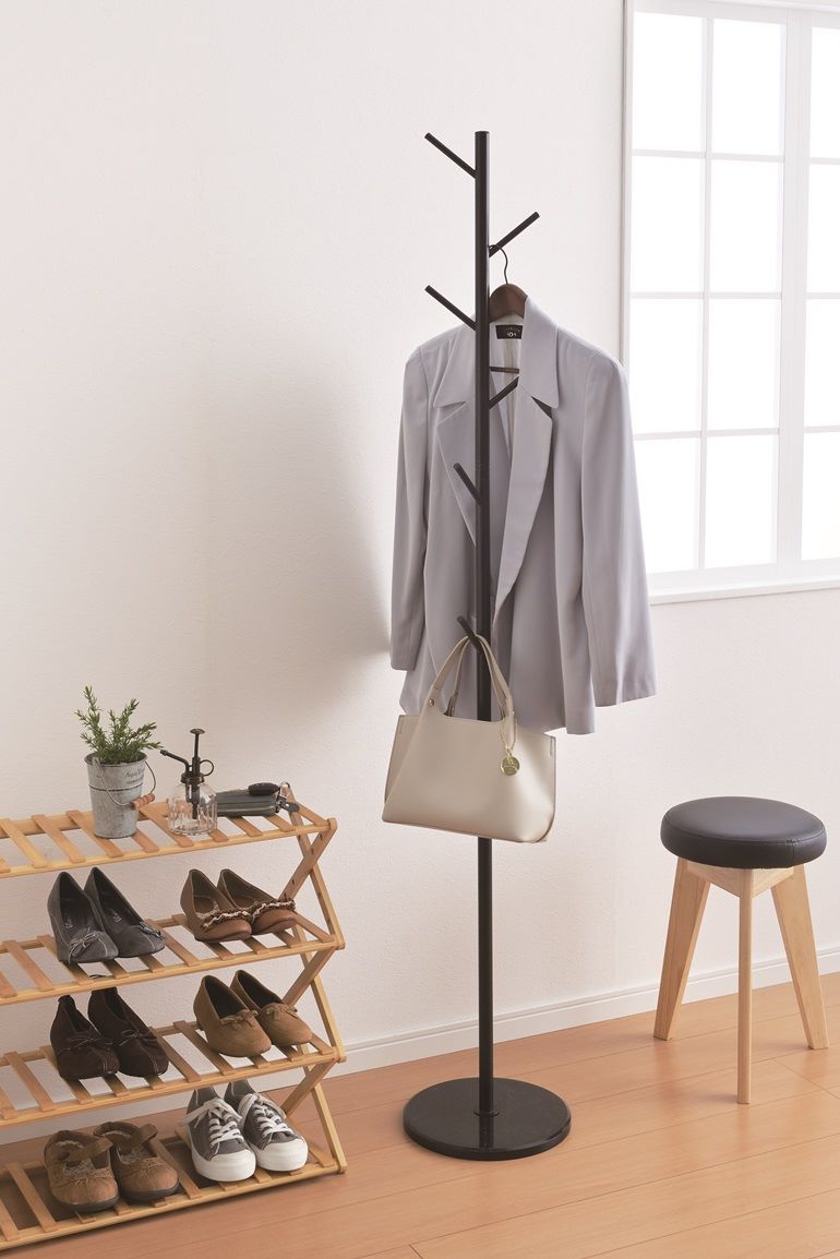 シンプルなデザインですっきりとした見た目のポールハンガー