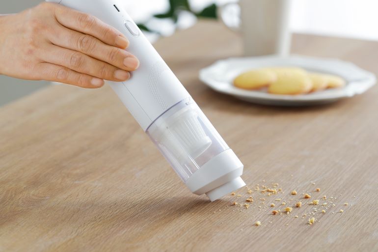 お掃除。コンパクトで軽量なのに、パワフルにゴミを吸引します。