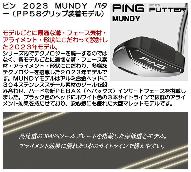 ピン 2023 MUNDY パター PP58グリップ装着モデル 34inch