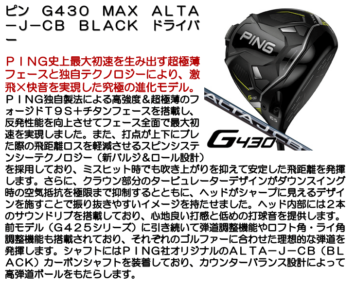 ピン G430 MAX ALTA J CB BLACK ドライバー 10.5度 FLEX-SR