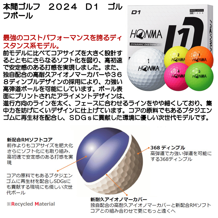 本間ゴルフ D1 ゴルフボール 2024 グリーン 1ダース