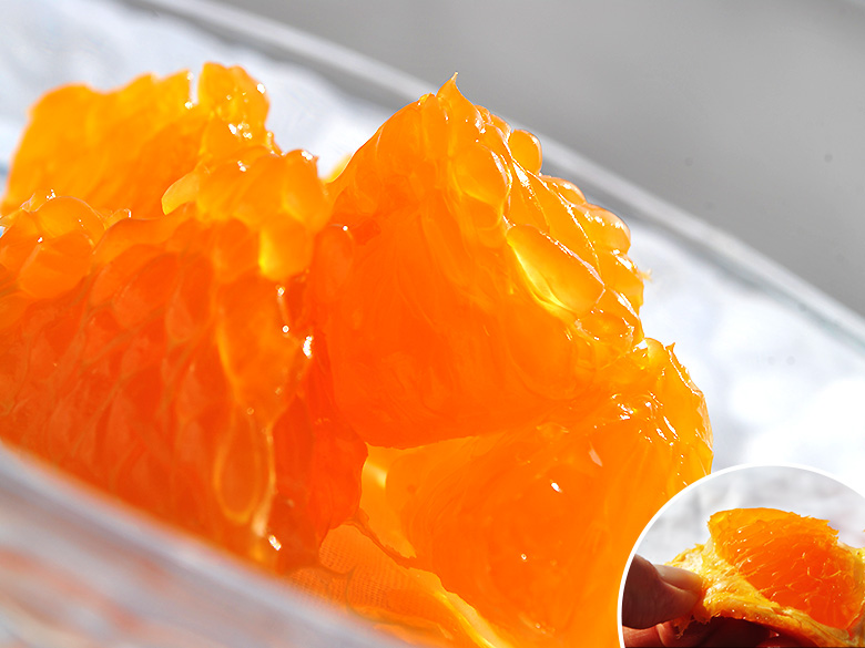 果肉を包む皮は薄く簡単に手でむくことが出来ます。果汁量も多いです。