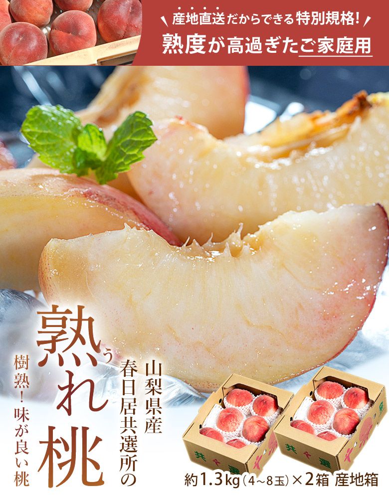 【6/13から順次出荷】 訳あり 春日居共選所の熟れ桃 山梨県産 約1.3kg×2箱 計約2.6kg 産地箱 ※常温