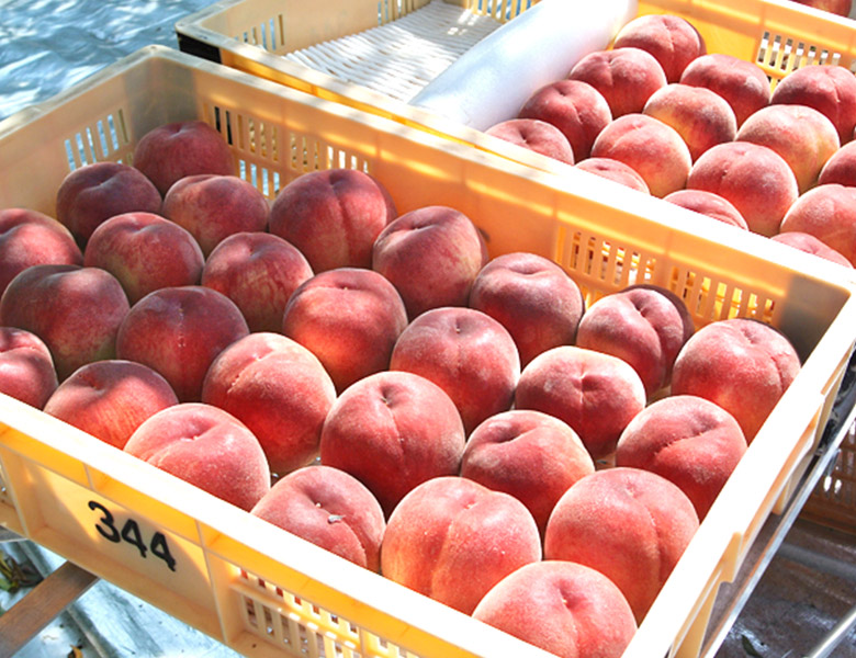春日居地域の桃農家さんは多くの桃を収穫します。