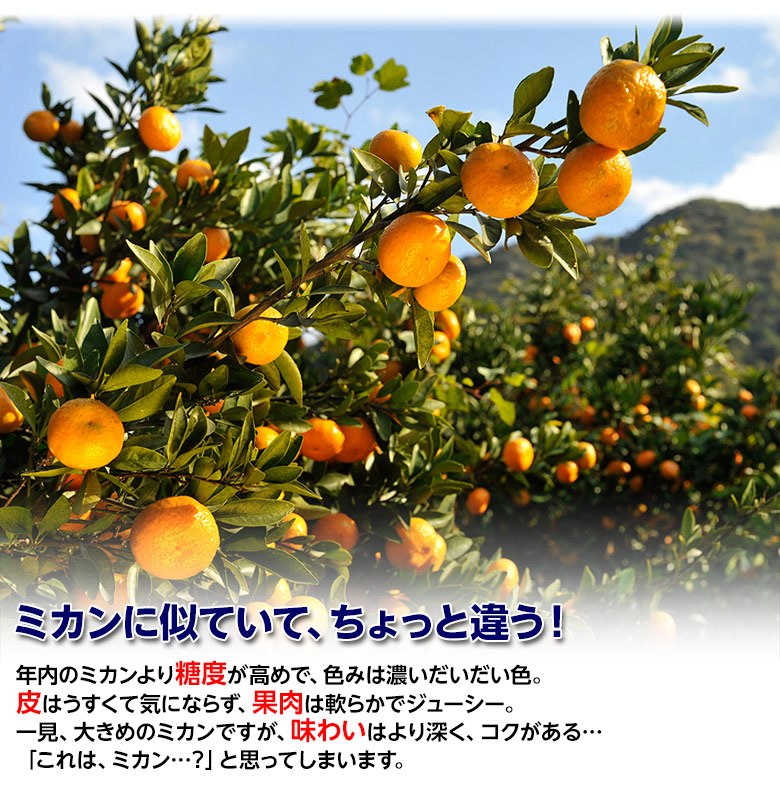 個体差はありますが、1玉180gにもなる大玉果実。しかし、決して味が薄いということはありません。アンコールの独特の風味に興津早生の食べやすさ、ポンカンの強い甘さに清見のたっぷりの果汁、これら親たちの良いとこどりをした新種のみかんなのです。