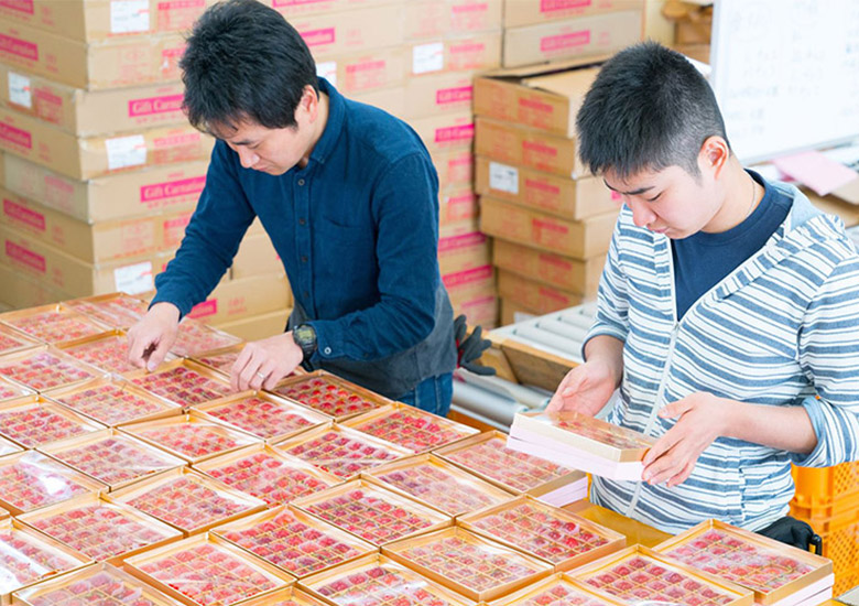 さくらんぼの代名詞とも言える「佐藤錦」。その国内生産量の約70%を占める山形県でもトップクラスの生産量を誇る東根・村山・天童などから、その年の出来が良いさくらんぼを現地協力会社と連携して優先的に集めます。上質な甘みと繊細な果肉、ルビーを思わせる美しさを併せ持つ佐藤錦は日本が世界に誇るまさに芸術品です。