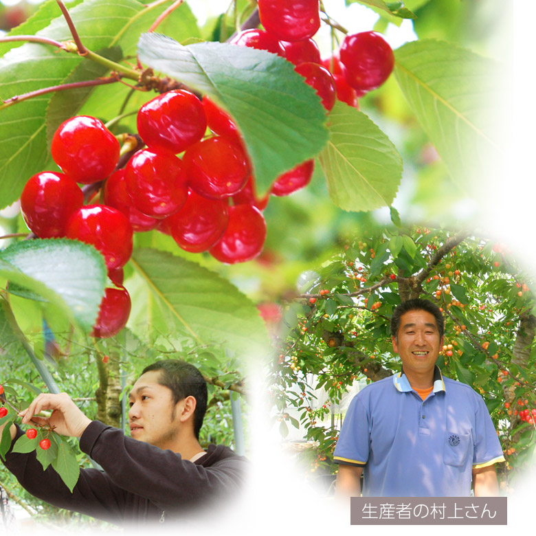 村上さんは、温室栽培の農家さんの中でも、非常に大粒で美しい突出したレベルのさくらんぼを作り出します。村上さんのさくらんぼを見ると、さくらんぼが『紅い宝石』と呼ばれる理由がよく解ります。