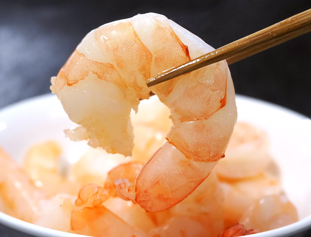 ボイルするだけでも美味。エビチリやフリッター、シーフードカレーなどに使っても抜群の存在感です。