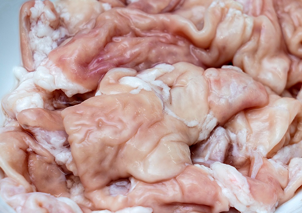 豚の大腸や小腸は内臓特有の臭いがキツイと思われがちですが、実は、処理した直後の内臓はほとんど臭いがありません。