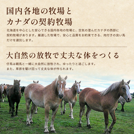 | 原材料/素材/材質 | 馬肉 馬刺しのたれ原材料:しょうゆ(国内製造)、植物性蛋白加水分解物(大豆を含む)、糖類(砂糖、砂糖混合異性化液糖)、食塩、かつお節エキス(小麦・さばを含む)/カラメル色素、調味料(アミノ酸等)、甘味料(ステビア、カンゾウ) 馬刺し生姜原材料:しょうが(国産、中国)、食塩/増粘多糖類、酸化防止剤(ビタミンC) ユッケのたれ原材料:醤油(国内製造)、糖類(砂糖混合異性化液糖、砂糖)、本みりん、食塩、コチジャン、清酒、にんにく加工品、食用ごま油、香辛料/アルコール、増粘多糖類、(一部に小麦・大豆・ごまを含む) |