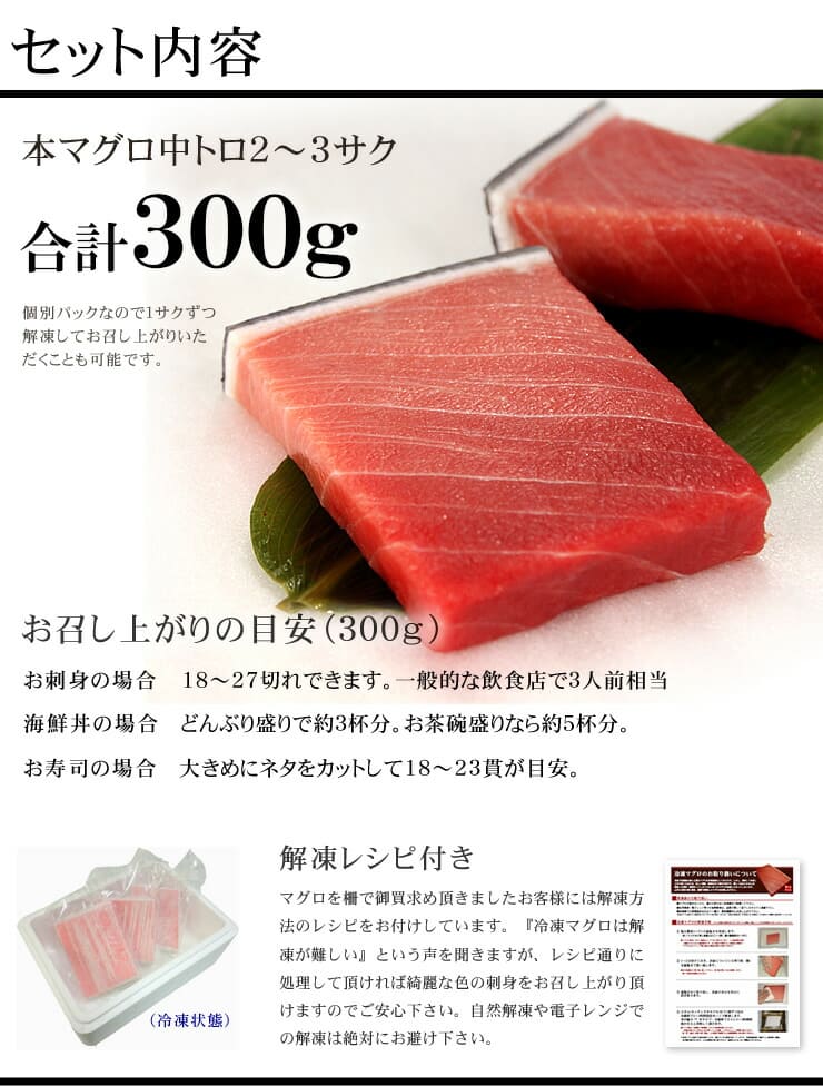 本マグロ 極上中トロ 300g 解凍レシピ付 [中トロ300]