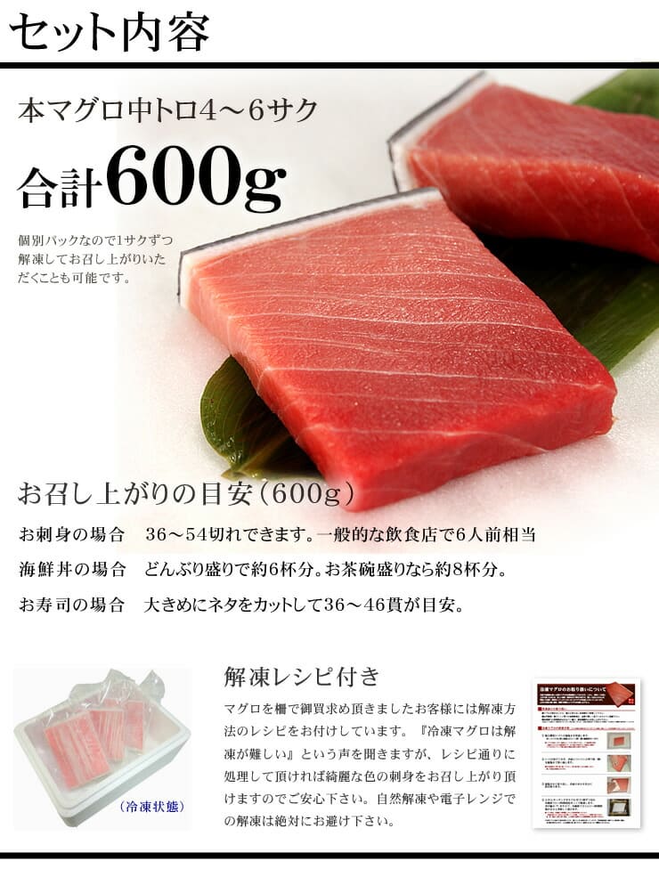 ![本マグロ 中トロ 600g 解凍レシピ付 [中トロ300-2p]](http://d3mijdhf1k8u77.cloudfront.net/img/goods/L/AA0312-10001143-P.jpg?120010)