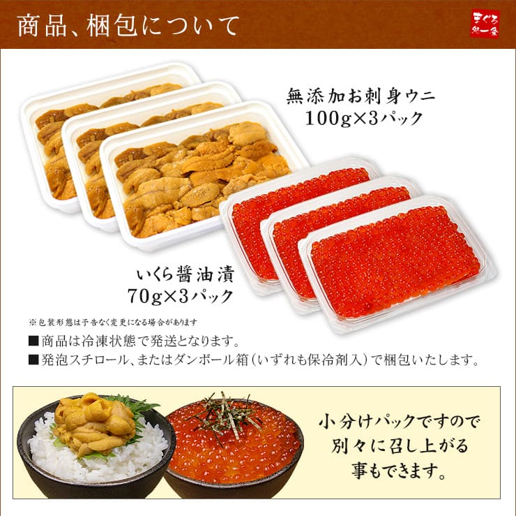 | 内容量 | ウニ100g×3、イクラ70g×3 |