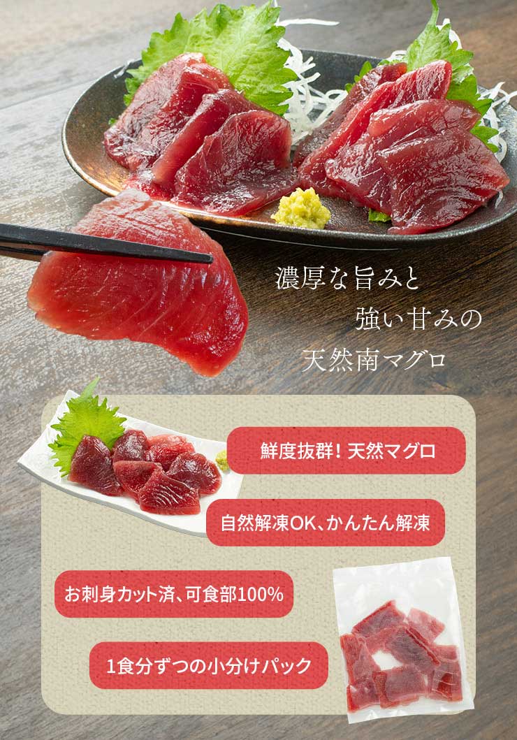 ![天然 南マグロ 切り落とし 480g(80g×6パック) [天然ミナミ鮪切落し80g-6p]](http://d3mijdhf1k8u77.cloudfront.net/img/goods/L/AA0312-10003638-P.jpg?120010)