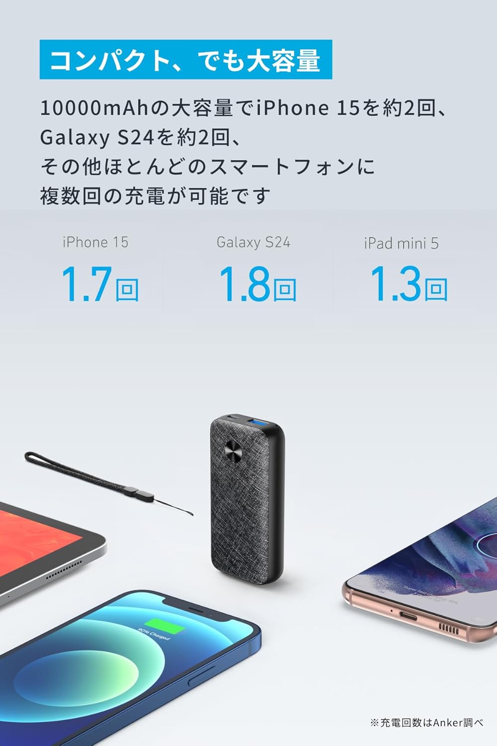 AnkerPowerCore10000PDRedux25W、USB-C&USB-Cケーブル(MicroUSBケーブルとLightningケーブルは別売り)、ストラップ、取扱説明書、最大24ヶ月保証(※正規販売店からの注文に限り18ヶ月保証の対象となり、条件付きで+6ヶ月の延長保証が付きます。注文番号が保証書の代わりとなります。)、カスタマーサポート