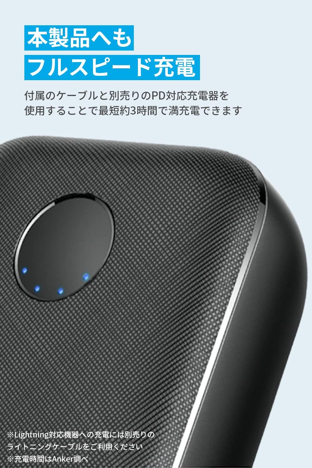 ※18W出力のPD対応充電器およびUSB-C&USB-Cケーブルを利用した場合