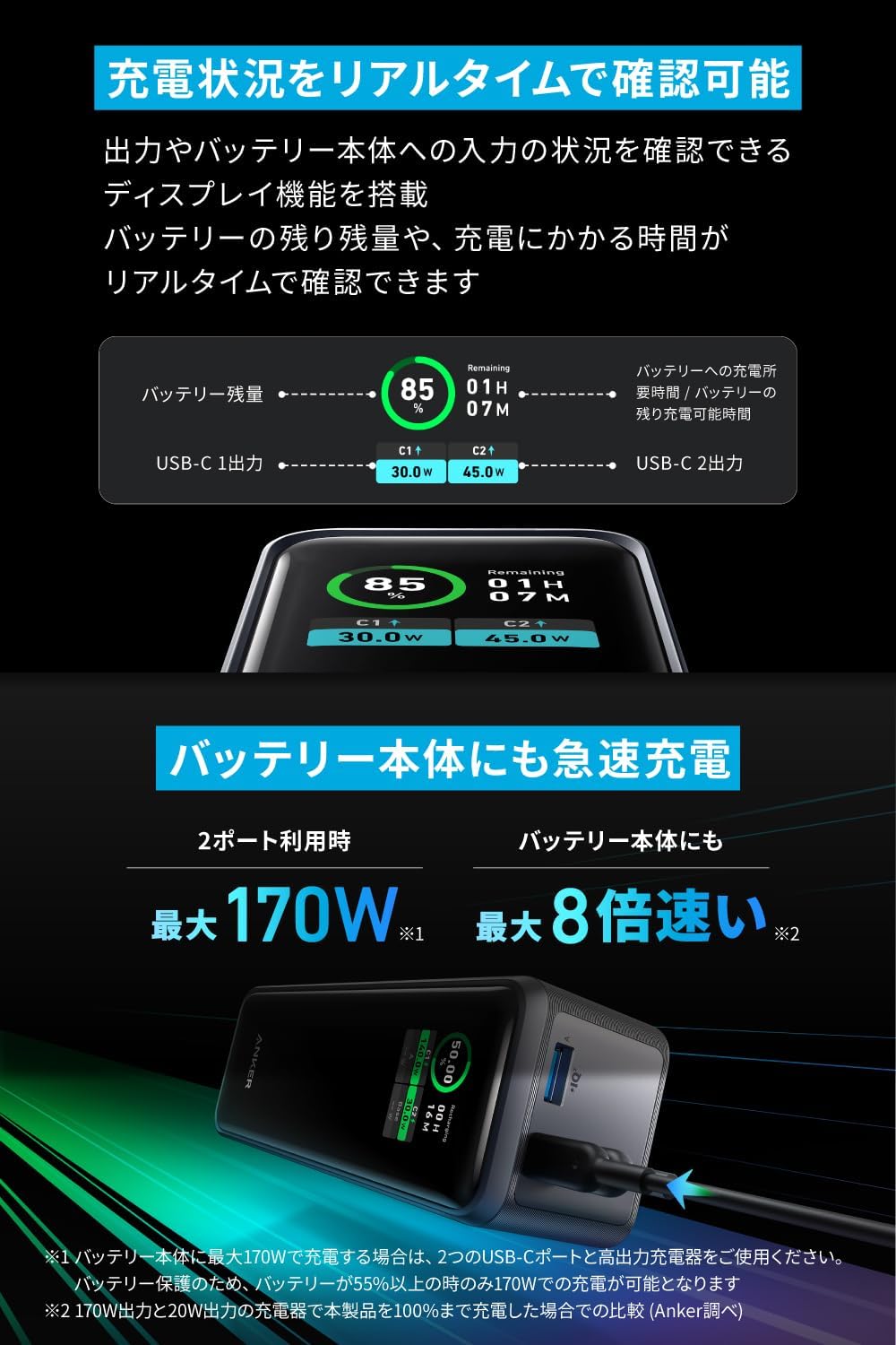 Anker Prime Power Bank (27650mAh, 250W) ブラック