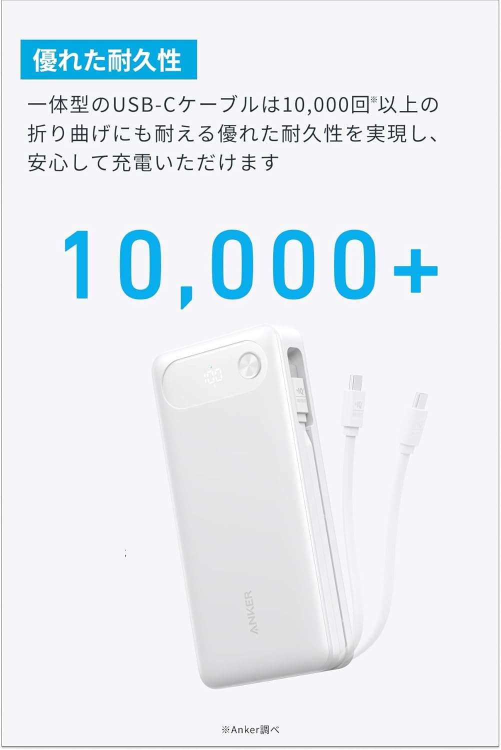 Anker Power Bank (20000mAh, 87W, Built-In USB-C ケーブル) ホワイト