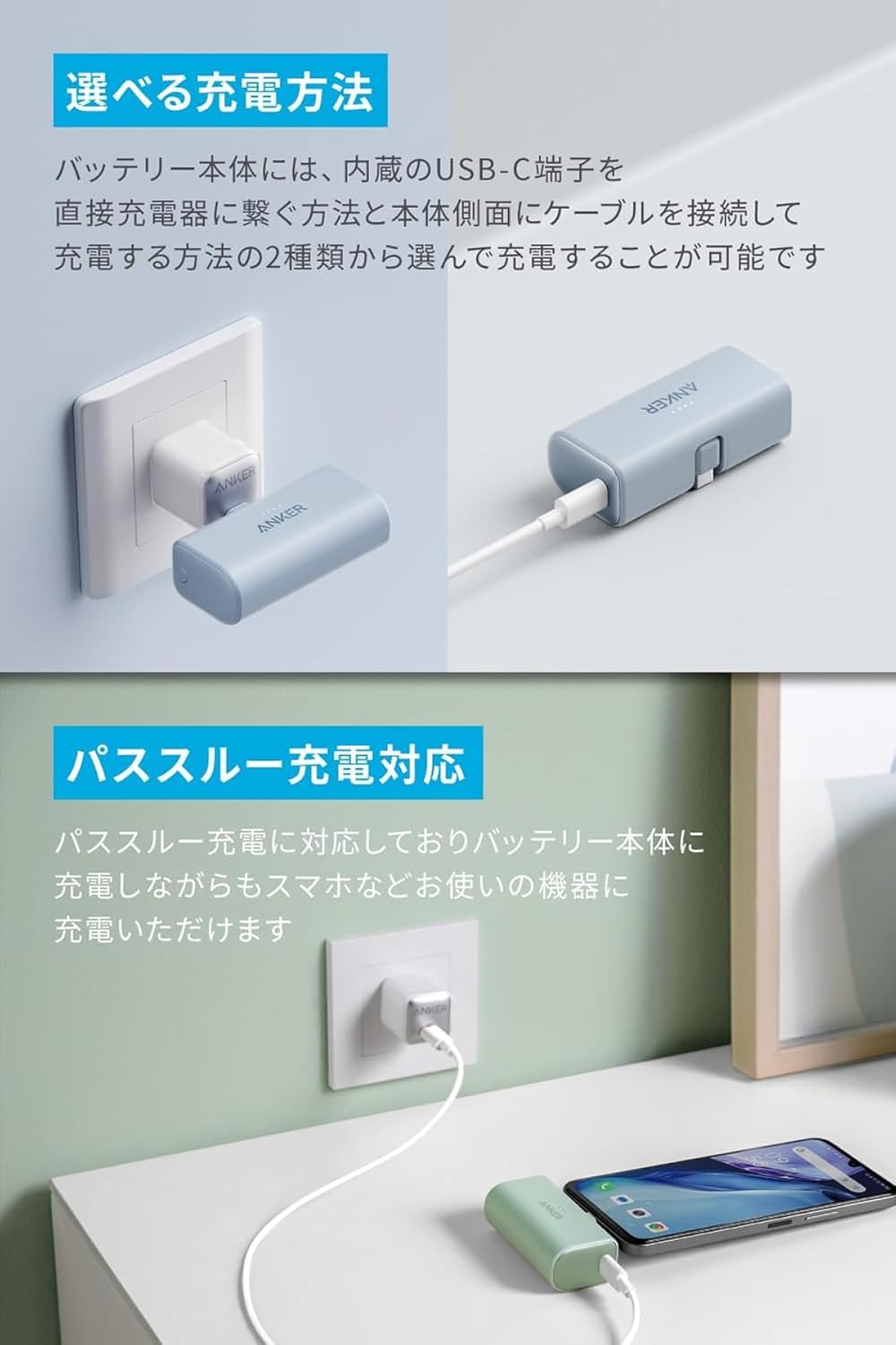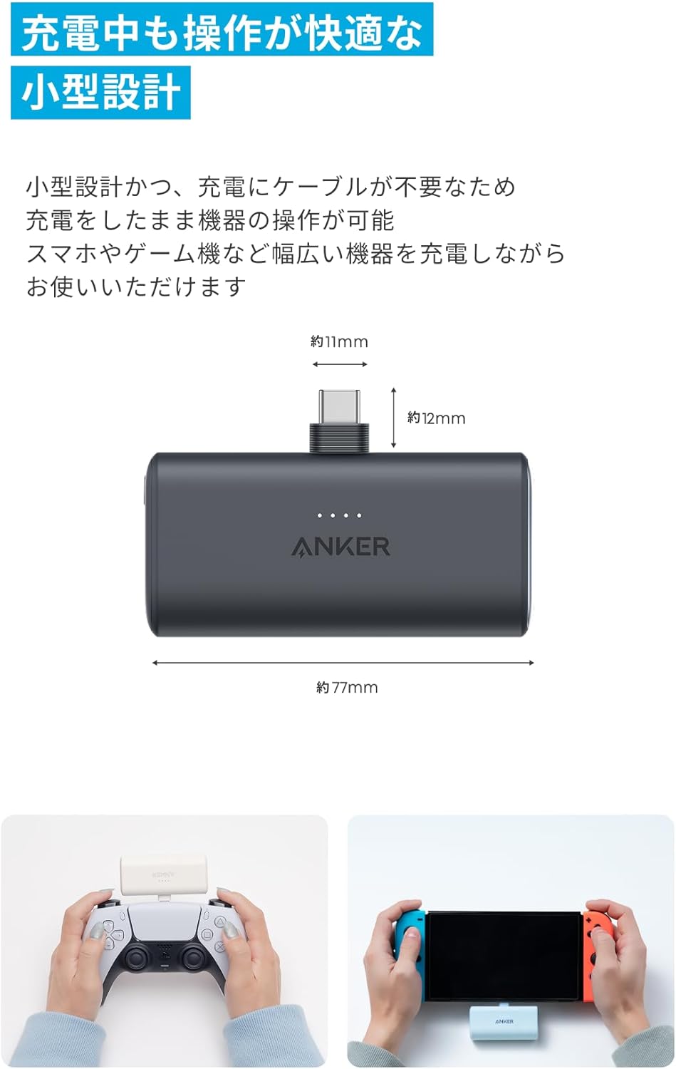 Anker Nano Power Bank (22.5W, Built-In USB-C Connector) ピンク